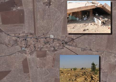 Satellite imagery from Husseinya village in Tell Abyad countryside which was razed to the ground after taken by YPG militants in June 2015